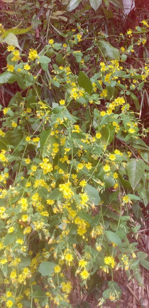 あじさい坂の階段は避け太平山神社の駐車場から入山。登山口にある神社にお詣りしてから登り始めた。曇り空ではあるが歩くには程よい温度である。しかし途中で風が冷たくなり1枚羽織る。晃石山への途中で高齢ご婦人が晃石神社まで行けないのでここで3往復しているとの話を聞き、いずれそうなるのかなと思いつつ登る。晃石山から桜峠へ。桜峠では83歳の男性にあった。奥様を亡くされ山歩きで寂しさを紛らわせているとのこと。ここでも考えさせられた。馬不入山で休んでいると、岩船山方面から2人の男性が登ってきた。かわ×ひろしさん・みつおさんで、83歳と76歳の兄弟とのこと。またまた83歳の元気な方にお会いし、当会のサトウさんはまだまだ若いねーと話し合う。2人とはここで別れ、私たちは桜峠から清水寺へ下りる。清水寺から晃石神社へのコースは私の好きな登山道である。岩もそこそこあり、桜峠からのあの長い階段を思うとよほど楽である。ただし夏場は蛇が多い。晃石神社で一息ついていると、晃石山頂からあの2人が下りてきた。太平山神社へは初めてとのこと。これも何かの縁と4人で歩くことにした。途中見晴らしの良いところでは東京のビル群も見られ素晴らしい景色に皆感動。グミの木峠から太平山頂に行きたいというので、直下の急登を頑張って登ってもらい浅間神社に到着。2人は登頂に喜んでくれた。神社前の椅子に座っていた宇都宮から来た同級生3人組に写真を撮ってもらい下山する。するとどんどん人が登ってくる。どうも浅間神社の分社に行きたいらしい。登山口の“5分で行ける”の文に皆登ってきたらしく、足元もおぼつかないので分社の道を教えた。太平山神社には結構人がいて驚いたが、後でわかったがバスツアーで来たようだ。同行の2人は千葉から電車で来たというので栃木駅まで送った。私たちはこんなに遅くなるとは思っていなかったので風呂をやめて帰宅した。思いがけない出会いがあるので近場の山でも楽しいものである。