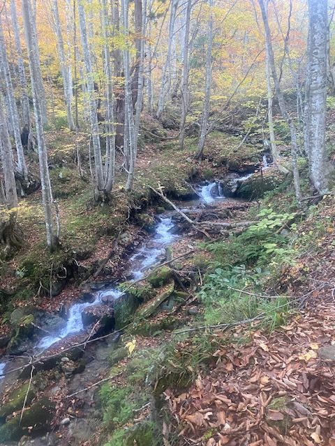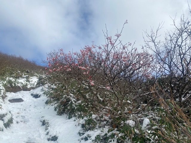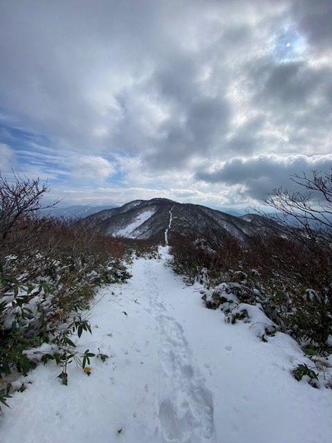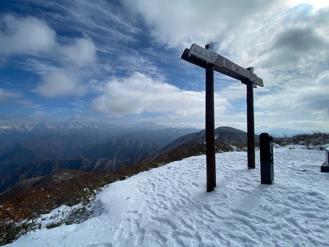 小山を3時15分に出発し、1名のメンバーを宇都宮インターパークでピックアップし宇都宮ICから高速で津川ICまでゆき、そこから二王子神社を目指した。神社への最後の10Kmくらいはすれ違いのできない細い道路で気を遣った。神社の駐車場はすでにかなりの車で埋まっており、そんなに人気があるのかとメンバーとびっくりした。神社の境内は芝がはられており、炊事場も完備されていて、確かにキャンプ場と言えるもので、トイレも水洗で綺麗であった。神主さんに事前に電話連絡をしており、いなければ賽銭箱に一張り1000円を入れといてくれれば良いとのことであった。テントを設営し(結局我々しかテント泊するものはいなかった)、登山開始。紅葉を楽しみながら、登山道は木で段々が作られており、斜度的にも非常に歩きやすい道で、何回か小さな沢を渡って七号目あたりで雪が登山道に出現し、その後八号目を超えて稜線に出ると一気に視界がひらけた。そこからは避難小屋を目指して進んでゆくと、その後に登る二本木岳分岐をすぎて、山頂の避難小屋に到着。中では灯油を入れたのかストーブが炊かれてたくさんのハイカーがいた。中に入らずに青春の鐘と書かれた大きな鳥居の前に立つ。山名板あり、飯豊連峰を見遣ると、雪のついた本山から先日登った朳差岳まで一望できる。風もなく寒くない山頂でよかった。日本海も見ることができ、二王子岳が人気の山なのも納得が行った。ここで昼食とし、しばらく休んだのち、二本木岳に向かいこの山頂も素晴らしい眺めで、引き返した後は、雪のついた下りなので慎重に進んで、登山口の神社に到着。3時すぎだというのにもう薄暗くなり始めている。テーブルがしっかりしており、そこで調理開始。まず牛肉を焼いたのち、冷凍エビを解凍しオリーブオイル、塩胡椒で焼く。みんな美味しそうだ。そこに定番のガーリックトマト味のパスタソースをあえて、パスタ投入。4人のうち2人は初対面で、各々の自己紹介をしながら盛り上がり、7時すぎには各々のテントに戻り就寝。5時にはテントを撤収して御神楽岳の室谷登山口を目指した。そこまで1時間30分以上かかる。登山口の駐車場は狭く、10台もとめられないところで、ぎりスペースを見つけてとめた。この辺りの紅葉は前日の紅葉を明らかに凌いだ。前日の登山道とは打って変わって、どろんこぐちゃぐちゃの道が多く、登山靴が汚れて、スパッツも泥だらけであった。登りなら良いが、下りに使うには危険な滑る箇所いくつかあり、トラロープも数箇所あった。この日も稜線に出た途端に飯豊連峰、前日に登った二王子岳、日本海も見えて俄然やる気が出た。雨乞峰に出るとおそらくガイドツアーと思しき軍団がいた。この軍団は御神楽岳山頂にどかっといたので、ここは何もせずに通過して本名御神楽岳に向かった。この細尾根はかなり雪で滑り凶悪な場所もあったが、木につかまりながらなんとかピークに到着。4人のハイカーが山頂からくるのとすれ違い、我々が到着した時には独占であった。ここでカップラーメンを食べて東北の山々を眺めた。南側は分厚い雲で覆われており、山を同定することができなかった。御神楽岳山頂に戻って、写真をとて、メンバーの1人がグローブを無くしたので見つけようとしたが結局見つからなかった。下りは何度も泥の中滑ってメンバー皆巧みな技でお尻をドロドロにせずにやりすごし、「ナイス体幹」の掛け声がかかった。紅葉は午後になると陽にあたってさらに美しさを増していた。下山口近くで酷い転倒になりそうであったが、なんとかこらえ、無事に下山。津川IC近くの温泉の予定はキャンセルして、帰路についた。初めて会うメンバーであったが、色々な仕事の話が聞けて新鮮であった。