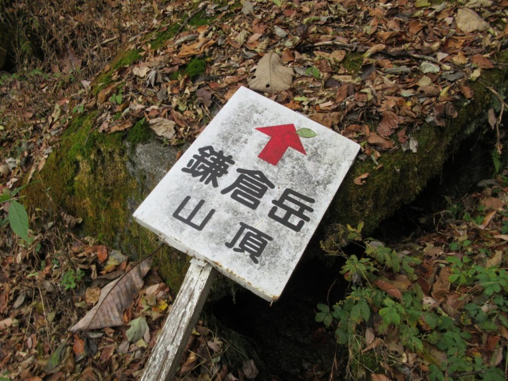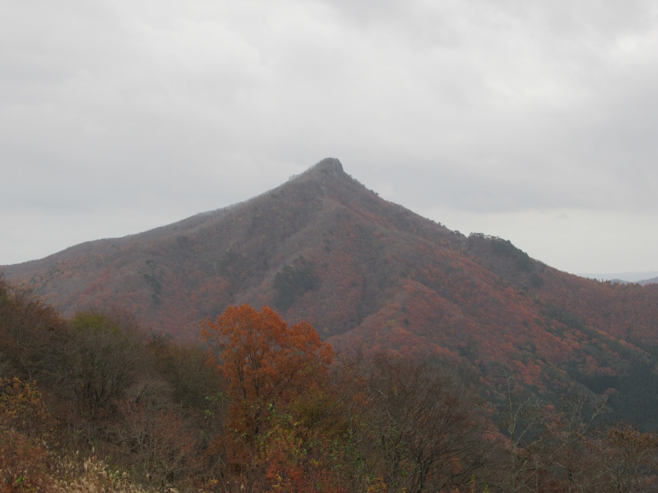 まずは大滝根山、あぶくま高原ホテル跡の上まで林道を進み駐車、誰もいません。天気予報では晴れでしたが、あいにくの曇り空、中腹から下が紅葉の盛りで陽が射していれば綺麗なのでしょうけれど贅沢は言えません。賽の河原から右の尾根ルートを急登し1時間ほどで山頂の自衛隊レーダーが見えて来ました。大嶽根山峯霊神社にお詣りし、ガスも出ているので梵天岩には行かず、沢ルートを下りました。所々鎖が設置された滑り易い急な道を下った後、何時もながらルートの分かり難い泥濘るんだ沢筋を進み、先ほどの分かれ道賽の河原に出ましたが、逆回りした方が無難でした。林道を少し歩き次の目的地、鎌倉岳に向かいました。