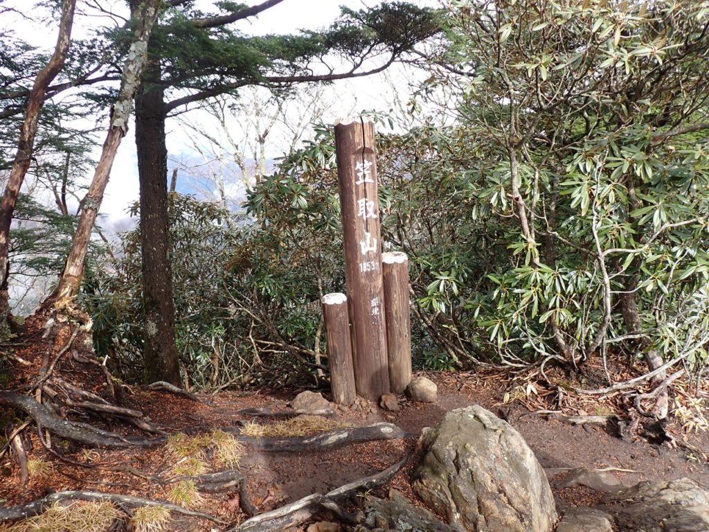 <行程>雁坂小屋7:05 – 7:55水晶山8:00 – 8:35古礼(これい)山8:40 – 9:58雁(がん)峠10:05 – 雁峠分岐10:20 – 10:54笠取山西峰11:22 – 11:30笠取山東峰 – 水干尾根分岐点11:45 – 黒槐(くろえんじゅ)の頭12:33 – 13:40唐松尾山13:55 – 14:42山の神土14:52 – 将監峠15:10 – 15:15将監小屋