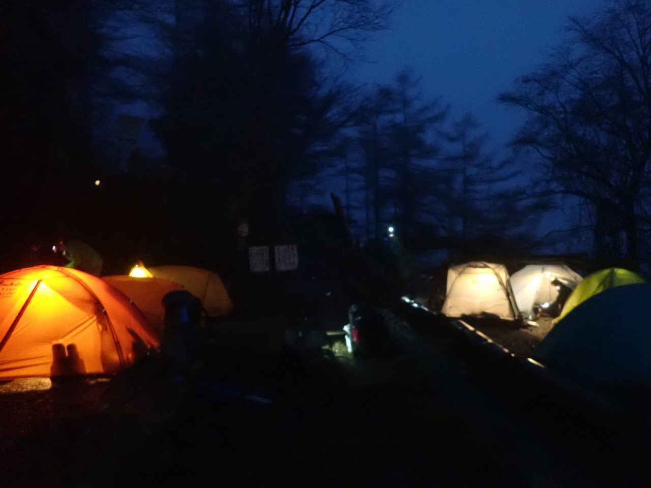 将監小屋も管理人は不在だった。小屋泊は布団付きで5000円となっていたので諦めてテントを張った。水は小屋横で勢いよく出ていた。トイレも近いので手洗いしやすい。その日のテント数は4-5基で少し寂しかった。霧は出てきたが雨には降られなかった。