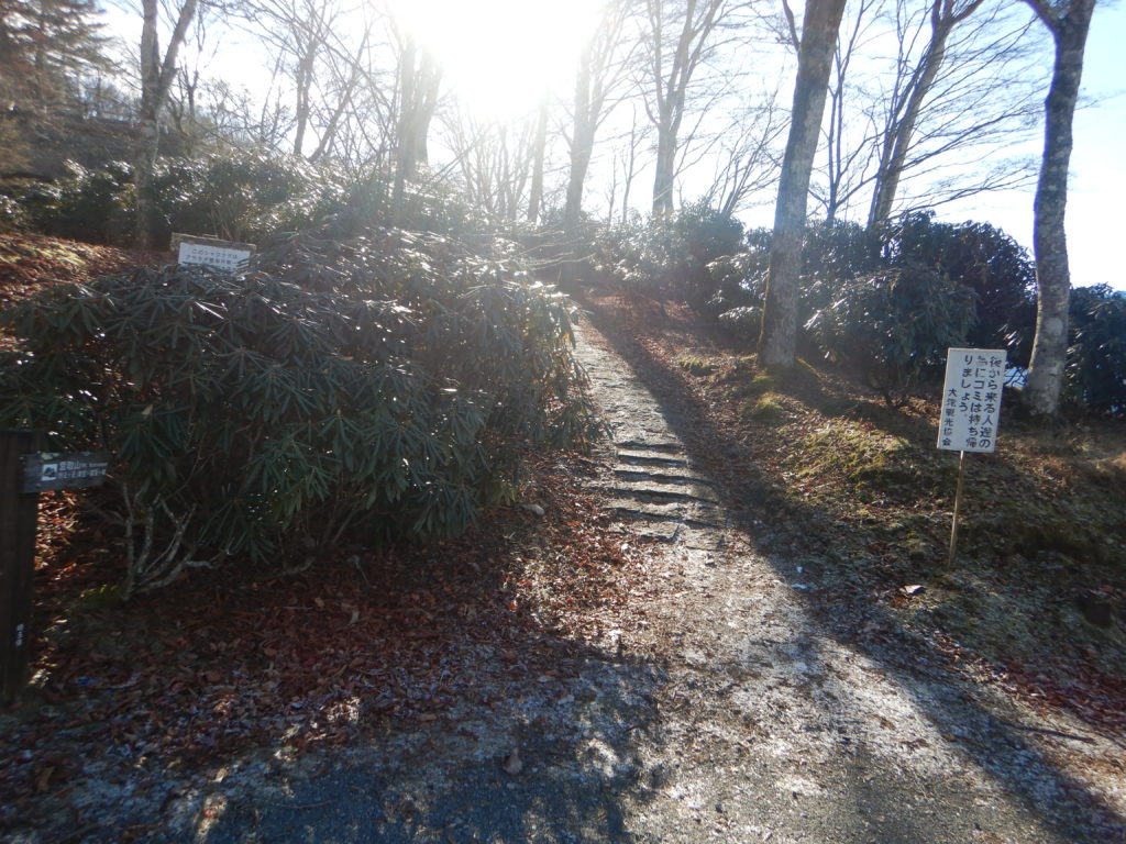 そこから、七ツ石小屋を経て、登山道は高度を下げていきます。下山途中あちこちに「平将門迷走ルート」と書かれたプレートが建てられていました。歴史に興味のある方は、このプレートの説明を読みながらこのルートをたどると、楽しく下山できるのでしょうが、この日の私は、鴨沢バス停の帰りバスの時間が気になってそれどころではありませんでした。