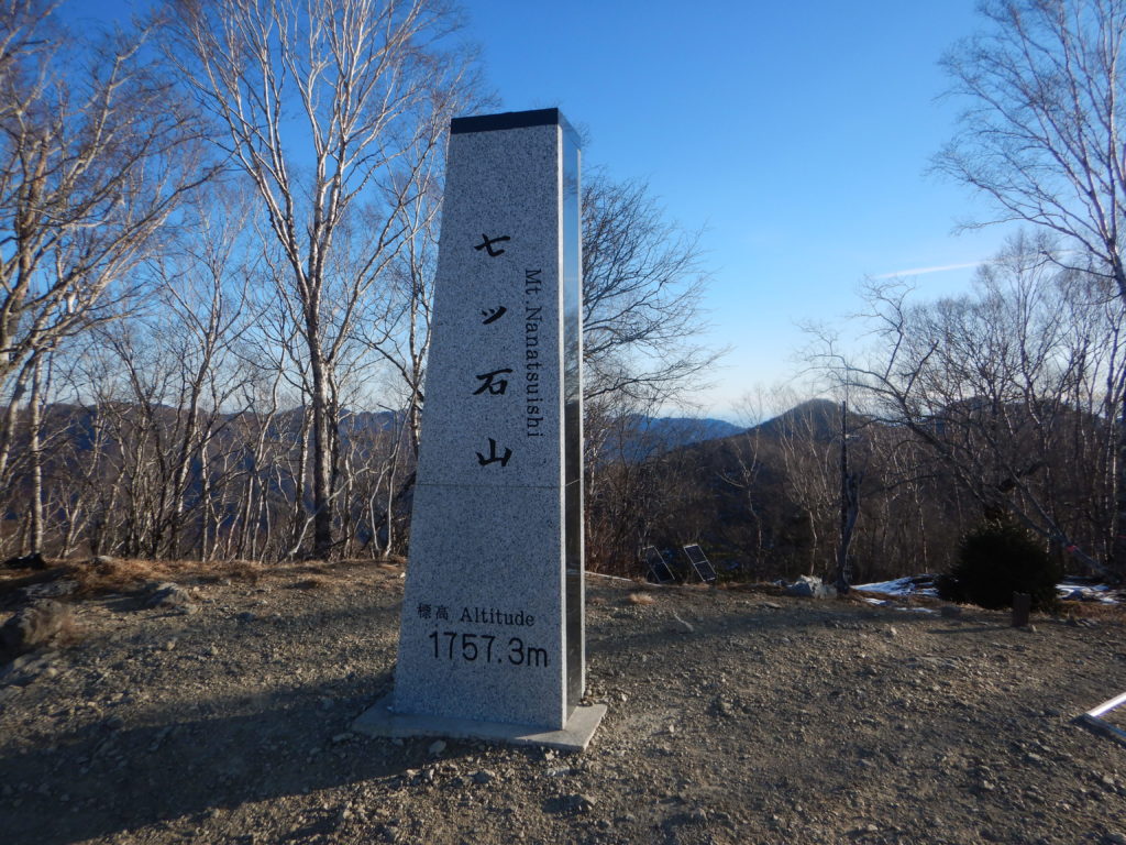 この日最後のピーク、七つ石山の頂上は立派な大理石に山名が彫られていました。昨日の霧藻ヶ峰小屋改築や奥多摩小屋新築など、都か国かは分かりませんが、はかなりの予算を山に当てているようでした。