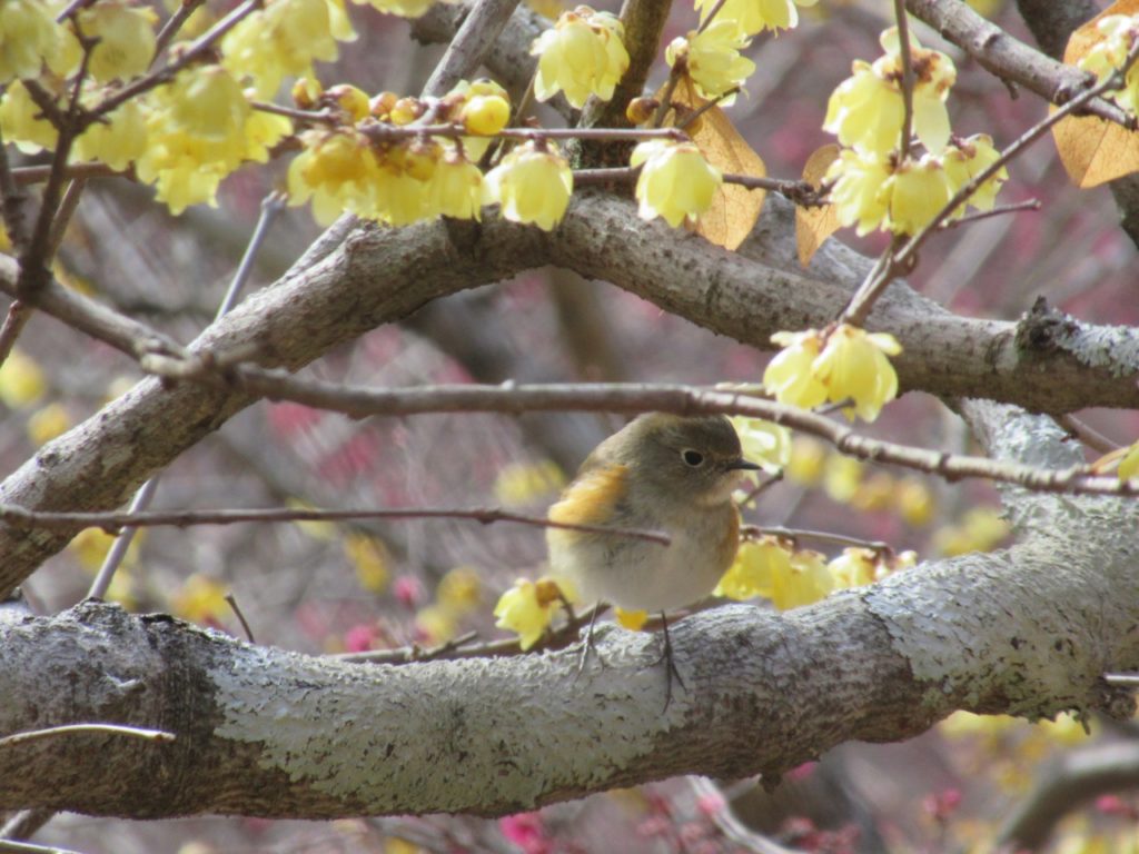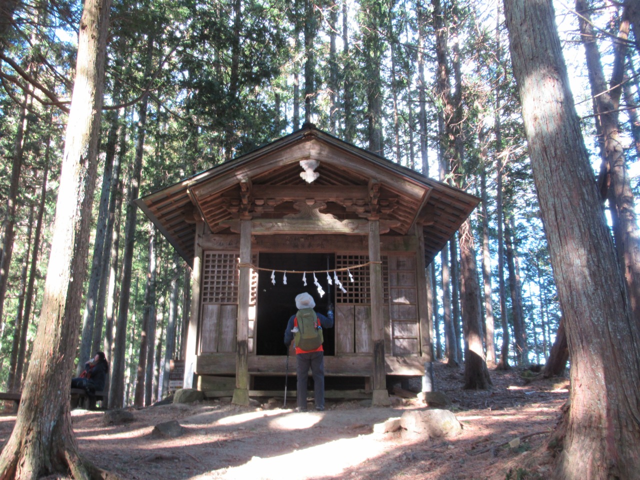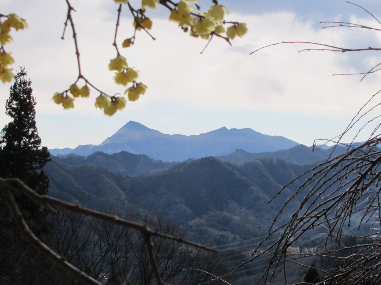 まずは薬師堂コースを辿り福寿草園に向かいます。園には早くも白梅、紅梅が咲き始め蝋梅は満開、お目当ての福寿草も咲きルリビタキが蝋梅の枝に止まり、武甲山もよく見えます。暫し春の花を観賞し少し上の見晴らし広場東屋で休憩した後、両神神社奥社で参拝、落ち葉で滑り易い鎖場を慎重に登り、四阿屋山々頂に着きました。まだ10時前で先客1人、後から2人連れも来ましたが、狭い山頂もまだ余裕、両神山の眺望を暫し楽しみましたが、寒いので下山します。下りは奥社から左に曲がり緩傾斜の鳥居山コースを辿ります。10時30分を過ぎる頃になると10~15人程の数パーティーが続々と上って来ますが、鎖場の渋滞、狭い山頂の混雑が容易に想像出来、早めに登って良かったと思います。