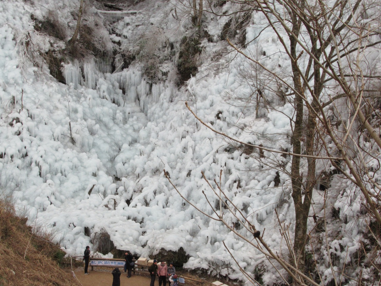 登山口の観景亭、両神神社下社、藥師寺に立ち寄り、12時前には駐車場に戻りました。近くで秩父、小鹿野辺りの名物らしい ”わらじかつ丼”を話のタネに頂き、セツブンソウ群生地に行きましたが、駐車場はガラガラ、園も無料開放で ”変だなぁ~” と思ったら、まだ時期尚早、何とかセツブンソウとザゼンソウを見つけカメラに収めました。更に足を延ばし、”あしがくぼの氷柱”見物、こちらは駐車場満車状態、外国人も多く、入場料500円、人工的ですがタコ入道の様な氷柱を楽しみ帰宅しました。
