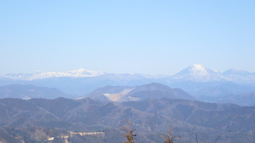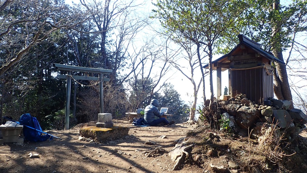 謙信平には花をつけ始めている桜が数本あった。早咲きのものもあるようだ。太平山神社に参拝して山道に入った。太平山、ぐみの木峠を経由してその上の展望台で一休み。一昨日賞味期限の終わった「懐中しるこ」を食べる。旨い。結構カロリーもありそうだ。晃石山に着くとオジサンが殿と座り込んでパソコンをいじっている。細い電線を張っているので無線をしているのだろう。かつて謙信平でやっているのを見たがその時はアンテナが違っていた。一体何をやり取りしているのだろう。使っているパソコンはかつて名機と言われたLet’s Noteだった。少し気になったが、後ろ姿で声掛けを拒絶しているように見えたのでそのまま神社へ下った。