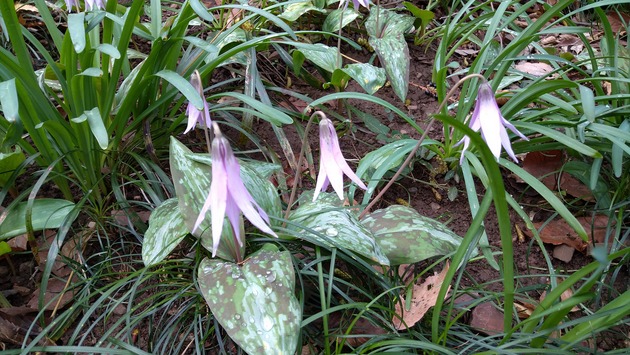 <詳細報告> 三毳山⇒ 公園内の駐車場が閉まっていたので、車道を渡った駐車場にとめた。朝7時なのに結構人がいる。公園内の木々や山は薄っすらと萌黄色となり、河津桜や山桜が咲き「春だな~」と、気持ち良い散歩だ。それから中岳へ向かうと、その斜面は見事なカタクリの群生地だった。何度も歩いているのに知らなかったとは残念。いつも行く「カタクリの里」より見ごたえがある様に感じた。でも、どちらの花も大きく三毳山のカタクリは立派です。今回は前日の雨と冷えで開いておらず、時期も終わり頃とあり、色あせていたり枯れ気味だった。来年こそは最盛期を狙って行こう。