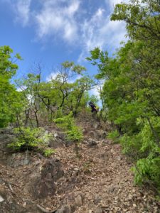 <詳細報告>天気予報では、寒気がきており天気は不安定で午後からとろこによっては、雷雨とのこと。午前中で登ってこれる大小山に行くことにした。そういえば、今時期の大小山にはいったことがない。天気は、予報通り、不安定な感じで天気はいいが風が冷たい。風の冷たさは、登山するにはかえって好都合だった。時折吹く風が気持ちいいい。新緑の頃の大小山は、緑にあふれ明るく感じる。山には鳥の鳴き声にもあふれている。ここには、三光鳥がいるとのこと。ホイホイと聞こえやしないかと耳を澄ますもシジュウカラの鳴き声ばかり、下山してから調べてみると三光鳥は、5月末ごろに渡ってくる鳥らしい。少し早すぎたようだ。新緑の大小山は、生気にあふれており改めて良い山だと感じた。
