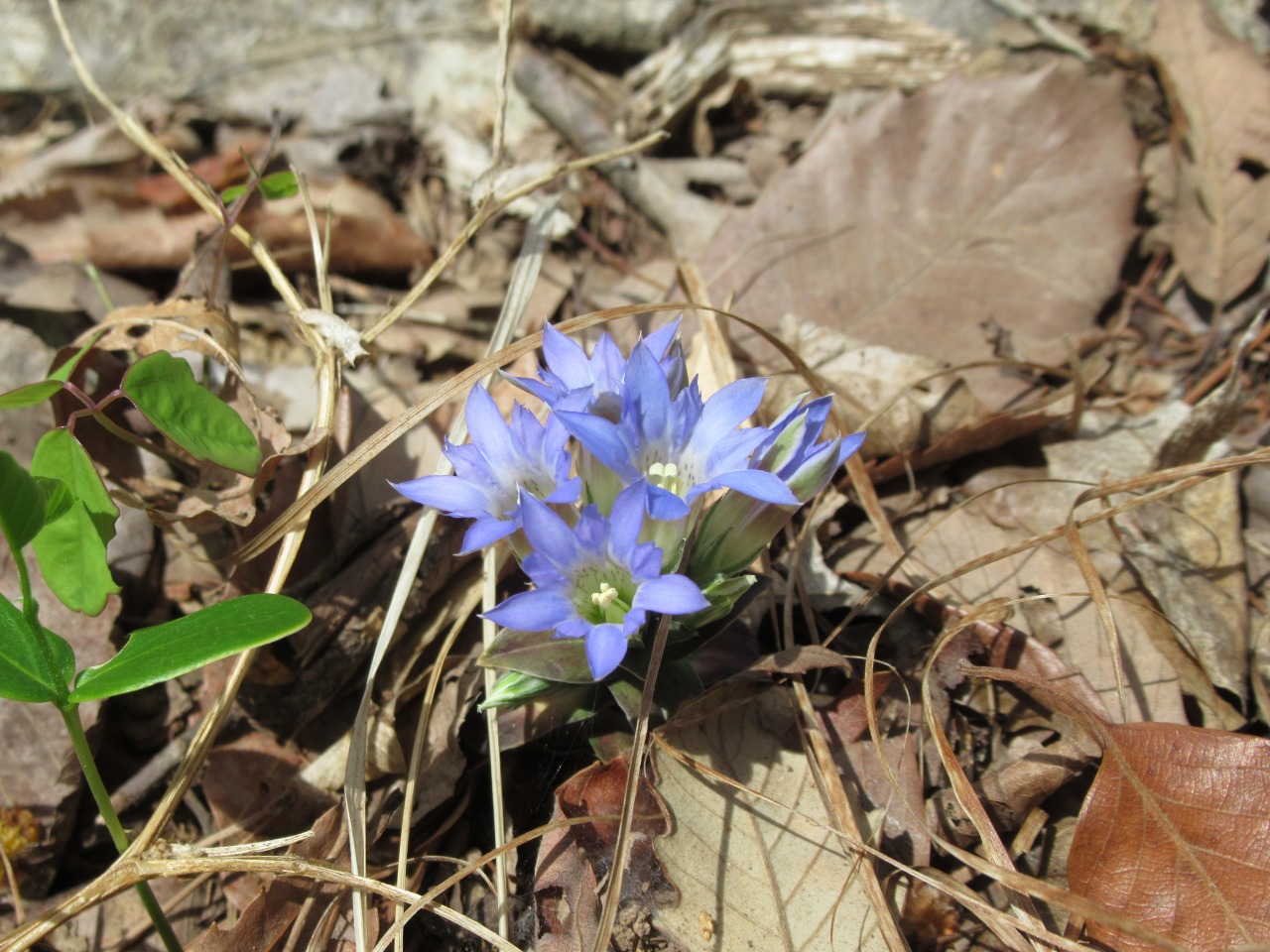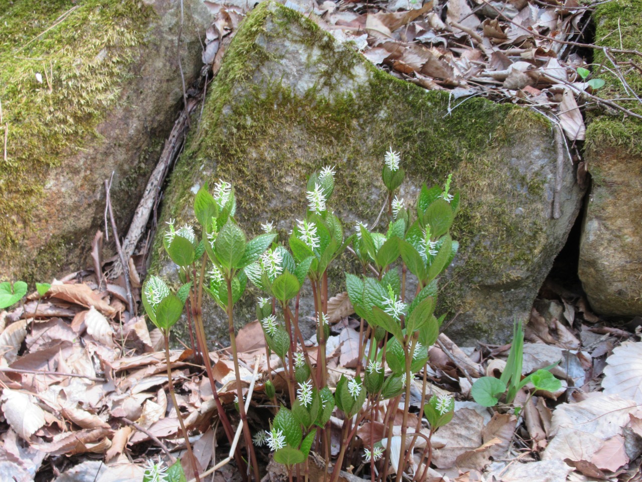 40分程眺望を楽しんだ後、車で40分程の虚空蔵山登山口に向かいます。登山口近くの作業道脇に駐車し岩井堂コース尾根に進むと、登山道周辺にはヒトリシズカ、ワダソウ、などの小さな花が咲いています。四阿屋社の祠を通り急登すると小一時間で山頂に着きました。こちらも北アルプスの眺望は素晴らしく(動画参照)、蝶ケ岳から白馬に至る残雪のアルプスを思う存分楽しめました。穴場の山らしく閑散としており、こちらに移住されて来られた 二組のご夫婦の方と景色を見ながら談笑しました。