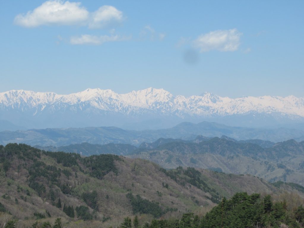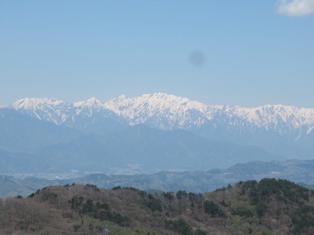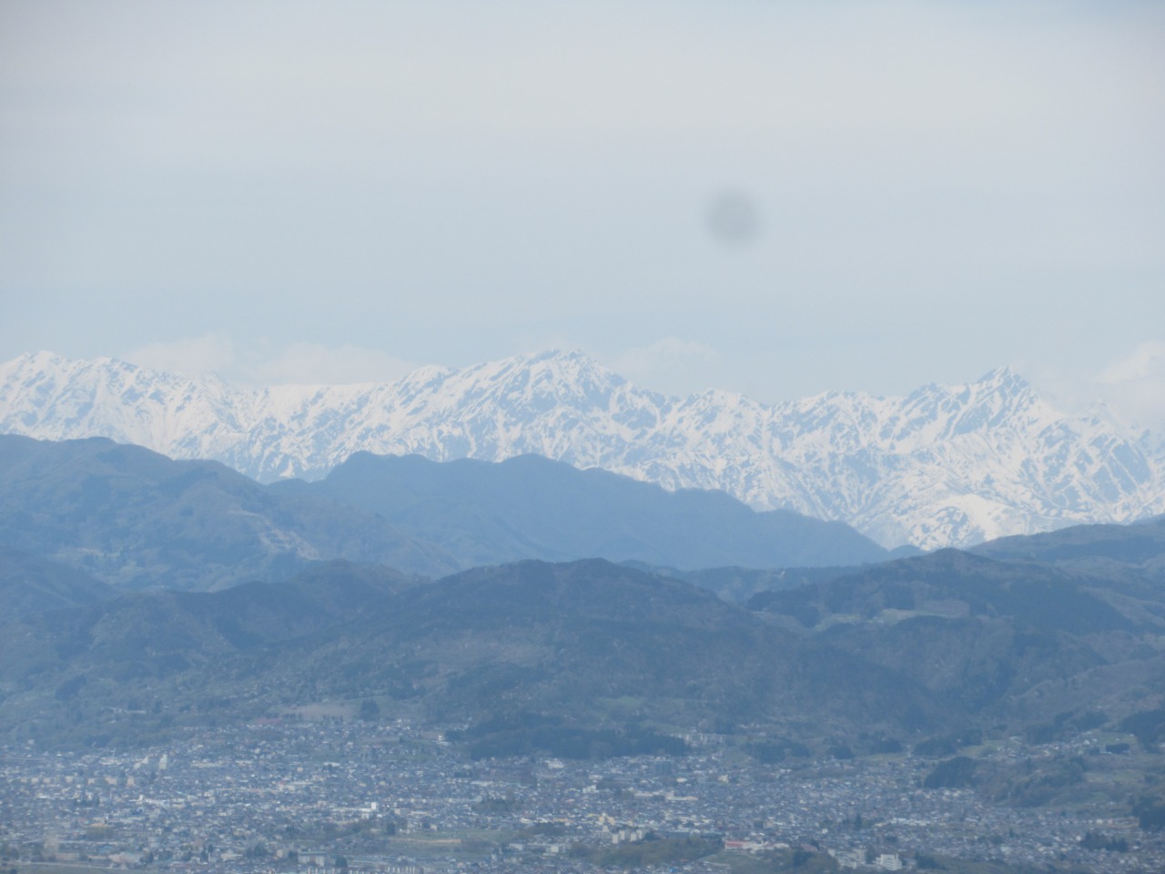 桜が終わっているので長峰山駐車場は空いており、朝天気も良いので眼前に迫る北アルプスの眺望は抜群でした。