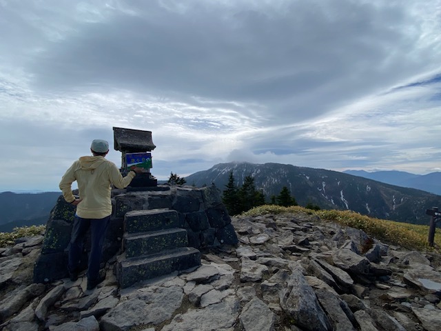 菅平牧場管理場駐車場 07:33 – 07:58 展望台 – 09:24 根子岳 – 11:44 四阿山 – 13:13 中四阿 – 14:43 菅平牧場管理場駐車場