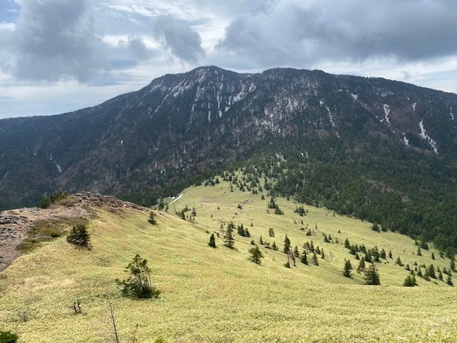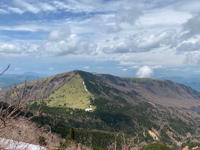 小山を5時に出発し、菅平牧場には7時すぎに到着。第一駐車場に駐車できた。気温が高い予報であったが、曇っていてそれほど暑くない。まずは根子岳を目指し、牧場の脇の登山道をゆっくり登って行った。牛が鳴いており、まさに牧歌的な雰囲気で和む。登山道は広くて傾斜が緩いので歩きやすく、順調に高度を上げた。左手には北アルプスが綺麗に見え始め、緑の牧場が眼下にありとても気分が良かった。程なく根子岳山頂に到着。数人のハイカーやトレイルランナーが写真を撮ったりくつろいでいた。ここより見える四阿山までの稜線は草原の中の小径風で美しい絵画のよう。小根子岳も綺麗な山頂でまるでゴルフ場の段差のあるパー3のグリーンのように見えた。四阿山への登山道には雪が残っており、ストックを畳んでチェーンスパイクをはき慎重に下った。まもなく雪が消え、チェーンスパイクを脱いで、泥道の中をなるべく汚れないように進んだ。コルから四阿山への登りはかなりの急登で、完全に雪がついているのでつぼ足で登るのだが、前にいたのは長野県立松本県ヶ丘高校山岳部の30名ほどの大軍団であった。彼らは休んでいる途中、男の子が高らかに校歌?を歌い出して、ああアオハルだと思った。彼らの後を追うようにしてゆっくり息が切れないスピードで登って行った。急登なので何回も休んだ。ようやく稜線に出て開けるともう北アルプスは霞んで見えにくくなっていた。高校生が山頂で休み終えたので、そこで我々はカップラーメンタイム。私はローソンオリジナル、札幌味噌ラーメン 信玄 なかなか濃い。連れの一人はQUTTA、もう一人は赤いきつねであった。ゆっくり休んだ後牧場目指して下り始めた。一部急なところで雪がついていたのでチェーンスパイクを履いたが、ほとんどはつぼ足で問題なかった。牧場に着くといの一番でお決まりのソフトクリームを買いにゆくと、観光客と思しきおじさんが「コーンのついたやつじゃないと物足りないよ」とアドバイスしてくれたので、それに従いカップではなくコーンのソフトクリームをいただく。旨し。根子岳の緑の絨毯のような山肌に初めてきた連れの一人が喜んでいたので、連れてきた甲斐があった。