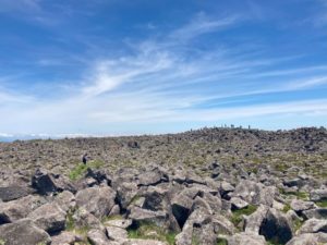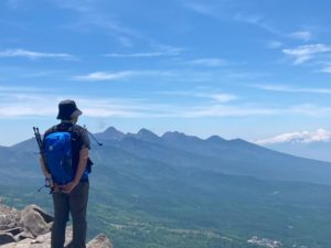<詳細報告>家を6時前に出たのですが、流石に、この時期は高速道路も混んでいると思いました。少し前の3月、4月の北関東は、ガラガラでしたので気になりました。蓼科山登山口には、8時に到着予定でしたが、少し遅れて9時の到着になってしまいました。登山口の駐車場は満車で路駐かなと思っていたのですが、なんとか1台止めるスペースがありそこに車を滑りこませることができました。8時あ到着なら車を止めるところはなかったかもしれません。ラッキーでした。蓼科山の7合目からの登山なので、日差しは強いですが、湿度もなく風が心地よく感じられ、良い登山になりそうな予感がしました。蓼科山は、東京から近いせいか登山者が多く、しかもはじめて山に登るような人が多いように思えました。真新しい靴にザック。家族や友人同士、数名のグループ登山は楽しそうでした。蓼科山頂ヒュッテに到着、ここから山頂までは、数分の距離なのですが、ここで暫しの休憩。ここで買ったオコジョの手ぬぐいを奥さんがなくしてしまって残念がっていたので、新しい手ぬぐいを購入。休憩後山頂に向かい、山頂に着くと360度の絶景でした。しかも風が冷たく心地良い。石に座ってしばらくの間、赤岳方面をみているとここから降りたくないなぁという気分になります。今回の登山道は初めて通ったのですが、下りはザレていて歩きにくい道だと思いました。下山後は、モウモウ牧場でソフトクリームを食べ、温泉に入り帰宅。良い山行になりました
