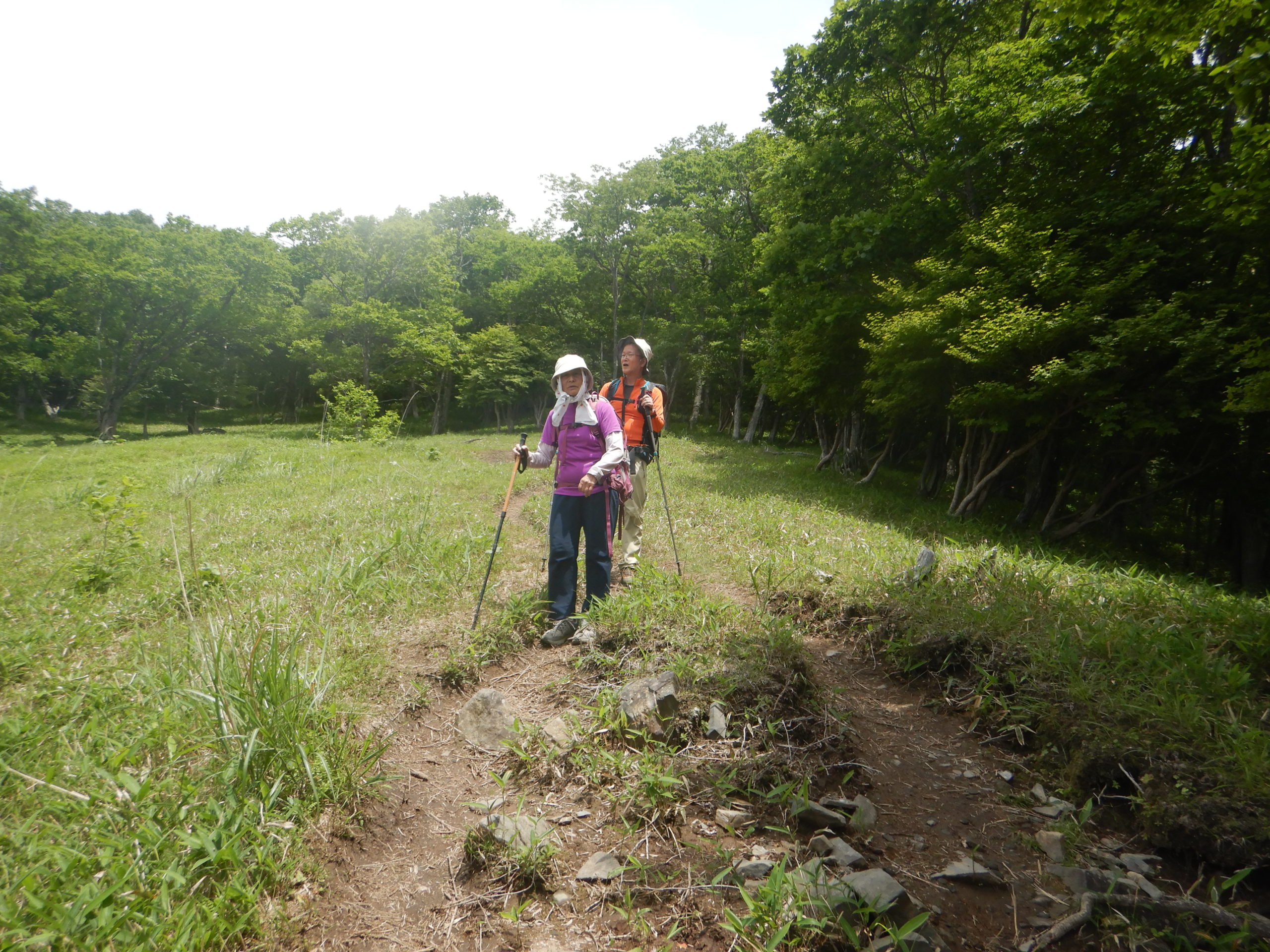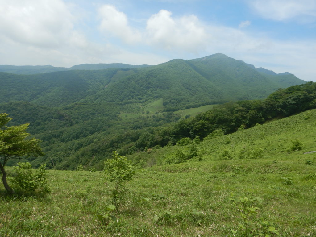 今は花の時期が終わり、新緑のアカヤシオのトンネルをくぐり、ときどき吹く風が心地いい。花時期が終わり、登山者にも会わず鳥のさえずりのみ聞こえる静かな下山でした。折場登山口に戻り、クルマの数は2~3台増えていました。