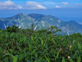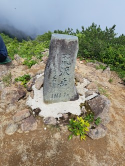 当初十字峡からの中の岳周回を計画しましたが、いずれ荒沢岳も登るので銀山平から荒沢岳→兎岳→中の岳→越後駒ケ岳の周回にしました。山小屋での皆さんの話からすると藪漕ぎや登山道の崩壊などから皆さんかなり時間がかかったようです。このコースは暑さも相まって最近の私の山行では厳しくハイレベルなものでした。中の岳避難小屋に泊まる人は体力的にも技術的にも上級者が多く、八海山ルートや十字峡周回、銀山平周回ルートの情報交換や山談議で話が弾み、楽しい時間を過ごすことができました。