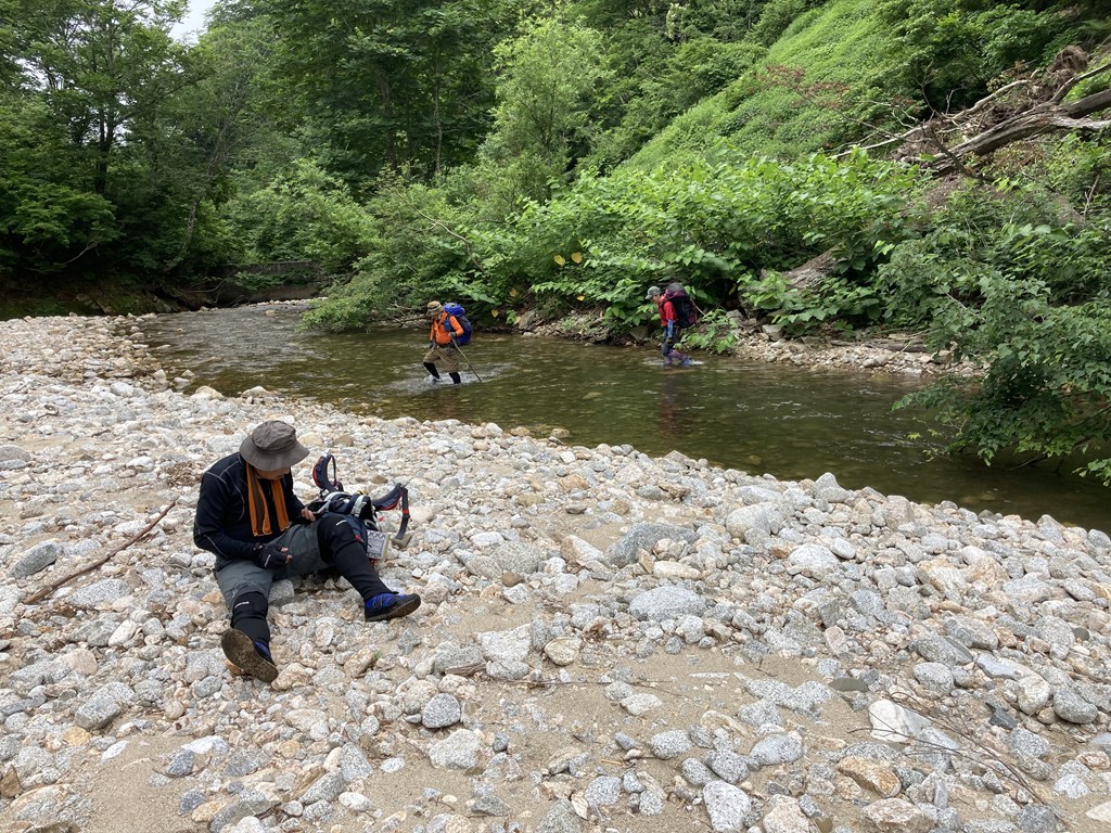 進む。また、沢への降り口もこんなところしかなく、ズリズリと足を滑らせながら降りる。何とも気が