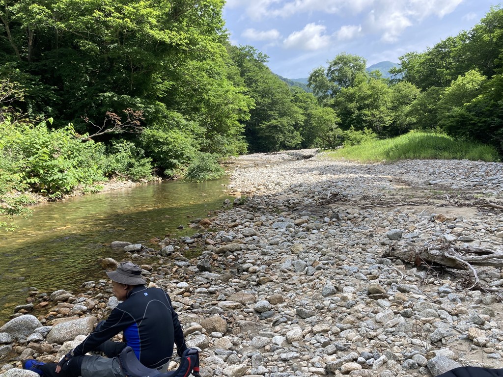 速く釣りをしたいところだが、まずテン場の確保だ。暫く上流を目指して歩き適当な場所を探す。