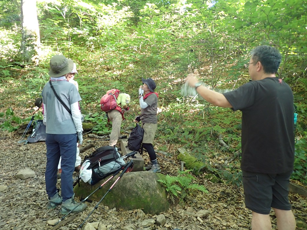 <行程>雨飾高原登山口 5:30 – 尾根取付 5:45 – 6:30 ブナ平 6:35 – 7:15 荒菅沢 7:20 – 9:05 笹平金山分岐 9:15 – 9:45 雨飾山 10:30 – 11:07 笹平金山分岐 – 12:10 荒菅沢 12:20 – 12:33 携帯トイレブース 12:40 – ブナ平 12:58 – 尾根取付13:28 – 13:40 登山口