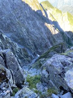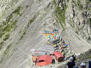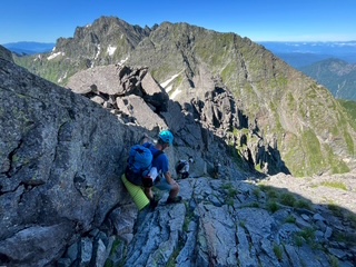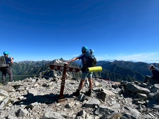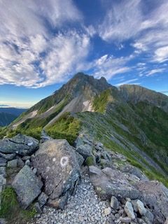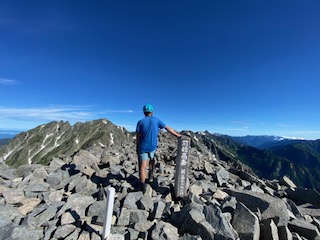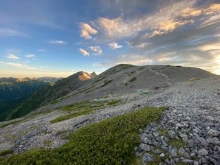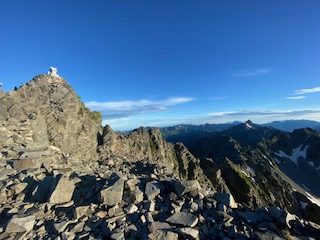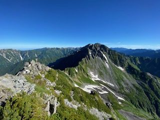 小山を0時30分に出発し、沢渡には4時過ぎに着いて2便目のバスで上高地に到着した。横尾まではご存知の通り長い長い林道歩きで、3日間のテン泊ザックが重く感じた。涸沢に向かうハイカー方が圧倒的に多いのか、槍沢に向かうものはガクッと減り、槍沢からの涼しい風が心地よく程なく槍沢ロッジに到着、しばし行動食を食べて休んだ。ババ平で水を汲めるだけ汲んでザックが一気に重くなり、樹林帯から抜けた途端に日差しが強烈なため汗もひっきりなしで、天狗原までに相当体力を消耗してしまった。一部雪渓があったが、難なく雪上をトラバースしいよいよ南岳までの最後の急登に差し掛かった。一歩一歩がとても重く、高度を50mも上げられず、肩で息をするように休みを何回も入れて心拍数が120台になるまで待った。最近は連れに心配してもらうことが多く、体力の衰えは著しい。ザックの選択を誤ってULザックにしたために、腰荷重ができず肩の食い込みが酷いので、両手でザックをおんぶするように持って肩の痛みを軽減させねばならなかった。少々重くとも、教科書通りに腰荷重ができるザックにすれば良かった。南岳登頂した時には息も絶え絶えで、山名板もあっさりしたもので写真数枚撮っただけで、南岳小屋に向かった。テント場はまだまだ空きがあったが、平なところは少なく、我々もやや傾いた場所を選ばざるを得なかった。夕食にはたまたま空いていたテーブルを利用して、仙台の牛タンを連れに持って上がったので網焼きで焼いたのだが、牛タンの滴る油が跳ねてそれに引火し、風があると飛んできて私の着ていた雨具についた時には穴が空いたかとヒヤリとしたが幸い穴はなかった。主食は連れの残っていたおにぎりとモンベルの旨辛ビビンバリゾット、美味しかったが風が強く寒くなってきたので早々にテントに戻った。夜中マットが下にずれることになり、熟睡どころかあまり寝ていない状態で朝を迎えた。轟轟と風の唸りが夜中聞こえて、大キレットが危ぶまれたが、少々弱まってきたので3時に起床し準備して、4時30分くらいにテント撤収し大キレットに向かって下り始めた。すれ違いのハイカーはほとんどいないのは幸いだった。最低鞍部、長谷川ピークまではそれほど危険とは思わず、北穂高小屋に到着した。テラスは満席でコーヒータイムを満喫しているようだった。テラスからは山々が一望でき、人気の理由もわかった。テーブルを譲ってくれたソロの女性が「どこからきたんですか」と聞いてきたので「南岳小屋です」と答えると「一緒ですね、私はこれから岳沢から上高地におります」というので「ええー、マジですか」とすごい女性もいたもんだと驚いた。我々は少し休んで北穂高岳山頂に到着。写真を撮っている3人組の若い男性達が、山名板の棒を穴から引き抜けるので引いて肩にかついで写真を撮るのだが、文字が見えないだとか色々で時間かかりまくっているので、いい加減にしてくれと思ったがなんとか堪えて我々は数枚写真を撮って先に進んだ。ここからの下りと奥壁バンドあたりのトラバースが一番個人的には危ないところかなとは思ったが、晴れていたし、岩がしっかりしていたので、予想より早く通過し涸沢岳に到着した。少し前の斜面では、今年初めて、例年見ない数の雛を連れた雷鳥親子にご対面できた。雛は5羽以上いたと思われ、そのうちの一羽は遠く離れていて、こういう子供もいるよなあと話しながら写真を撮った。穂高岳山荘の赤い屋根が見えてきて、まだテントがあまりないことで安堵した。昨日南岳小屋では槍ヶ岳山荘のテント場で断られたハイカー達が南岳まで行ってくれと言われたらしく、それなりの人数が夕方テント場を探していたのを見ていたからだった。10時過ぎにはテントをヘリポート脇に張って、しばらく休憩した。こんなに高所でも太陽はジリジリと照り付け、ヘリポートにシートを置いて寝そべっても暑くて寝ていられない。奥穂高岳に登ってゆく大勢のハイカーがいて、かなりの頻度で落石が起こり、「ああー」とか「うわー」とか声が聞こえてくる。「とても今登る気がしないなあ」とお互い落石の危険がなくなるまで待とうということになった。13時過ぎにややハイカーの数が少なくなったかと思い行ってみると、なんと登山靴に⭕️⭕️⭕️ツーリズムと会社名の入ったシールを貼った軍団が我々の真ん前にいて、これを仕切る「先生」と呼ばれる太ったお爺さんが登りや下りの人に大声で指図して仕切っており、なんじゃこれはと仕方なくついて行くような形で登頂。写真撮影にメチャクチャ時間がかかってきておまけにガスって奥社しか見えないような感じで、私自身はそこで写真を撮ることに興醒めした。連れの写真は撮ったが、私のはいいよととらずに早々に下り渋滞を回避した。山荘の前の広場では若いもの、年老いたもの、各々大宴会をしていたり騒いだり活気があった。私たちのテントの周辺には大阪弁を喋