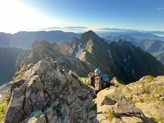 <概要>1日目 上高地より南岳小屋 テント泊。2日目 大キレット、涸沢岳、奥穂高岳 穂高岳山荘 テント泊。奥穂高岳、吊尾根、前穂高岳、岳沢、上高地