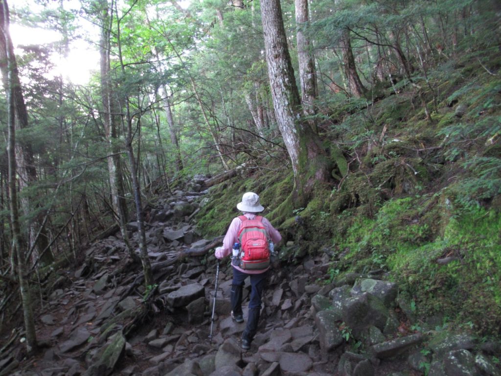 小山を4時前に出発、瑞牆山荘上の100台弱は停められるであろう広い県営駐車場に7:20に着きましたが満車状態、幸運にも最後の1台分のスペースに停められました。甲府辺りでは小雨も残っていましたが、すっかり雲も取れ、展望所からは瑞牆山が綺麗に見え、富士見平小屋周辺には幾つものテントが張られています。苔生すトラバース路を天鳥川まで下り桃岩へ、以前訪れたと時はもう少し楽な登りだったと記憶していましたが、体力の衰えを感じながらの急登、花はマユミの花とアキノキリンソウだけで紅葉にも時期尚早ですが、カラッと晴れて清々しく文句は言えません。