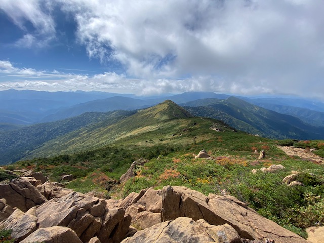 小山を3時に出発し第一駐車場に5時に到着。すでに多くの人がバス待ちの列に並んでいた。バスは定刻よりも早めに出発し、私たちは2台目で比較的スムーズに鳩待峠に到着できた。インバウンド客を見込んでなのか星野グリープが綺麗なホテルを作っており、様変わりしていた。まずは山の鼻にゆっくり向かった。登山もいればハイキングもいるのでとても人は多い。山の鼻ではすでにテントが数張りあった。ここから至仏山の登り。晴れていて気持ちが良い。滑りやすい石を慎重にたどりながら、下の景色を見やると尾瀬ヶ原が広がっており、素晴らしい眺めだ。一気呵成に休みを入れず山頂まで。山頂は人が多い。写真だけ撮ってやや小至仏山に向かったあたりの岩の上で休憩した。たくさんの人が小至仏山の方から登ってくるので逆走者が多いなあと思っていたら調べると山の鼻と至仏山の間だけ一方通行なだけで、小至仏山から至仏山に来てピストンはありなんだと初めて知った。麗らかな陽気で気持ちよく鳩待峠まで向かう。途中の原見岩は文字通り尾瀬ヶ原と燧ヶ岳、至仏山まで見える絶好の岩であった。鳩待峠よりもう一度山の鼻にゆきここから竜宮十字路を目指した。インバウンドの中国人、謎の外国人が多い。竜宮現象とは???いつもなんのこっちゃと思う。草紅葉が始まっており連れの2名も感動していた。見晴キャンプ場はそれなりに人はいたが、テントサイトが大きいのでいい場所を見つけて張った。本来は滝も見にいく予定であったが。時間も押していたので、原の小屋で生ビールとおつまみを買ってゆっくりした。その間にもどんどん小屋にチェックインするお客さんが到着していた。足がドロドロのものも少なくなかった。ワンオペでやっているのでお姉さんは忙しそうであった。ここで氷結を買ってテントに戻り夕食開始。牛肉とキノコを炒めてビーフシチューの元にぶち込んでアルファ米と食べた。旨し。持っていった定番の牛タンも焼いて良かったのだが、何故か私は悪寒戦慄が始まり歯がガチガチ言い始め寒くてシュラフに潜り込んだ。なんとか歯磨きに行こうとしたら右膝が急激に痛んでなんだこれはと思いつつなんとかテントに戻りシュラフに潜り込んだ。2名の連れには迷惑をかけた。22時頃になると体が熱くなったのでシュラフから上半身を出して寝ていた。朝には症状は消えていた。北アルプスでの疲れが出たのであろうか。翌日朝はぐっすり寝たので遅刻してしまい、30分遅れで見晴新道を開始したが、とにかくドロドログチャグチャの登山道が山頂近くまで延々続くので悪態をつきながら登った。冷たい風とガスでみなアウターを追加して登っていったが、九号目を超えたあたりで私は左手の親指を負傷してしまった。山の神の怒りに触れたのかもしれないと思った。何とか応急処置して山頂に。ガスで何も見えない。ここから俎嵓を目指す途中で風が弱くなるところがあり休憩した。たまに晴れ間が見えると視界がきくのだが、基本ガスのままであった。もう一つのピークでもガスで写真撮って、下山開始。今度はごろごろとした岩だらけの滑る登山道でグチャグチャではないが気を遣う下りであった。沼尻に下りてぐるりと回って見晴キャンプ場へ戻った。指を負傷しているのと足が疲れているので話をする気力がなくなり、無言で見晴から山の鼻までの6Kmを黙々と歩いた。山の鼻では花豆ソフトクリームと味噌ラーメンを食べて少し生き返った。若者たちと抜きつ抜かれつしながら鳩待峠到着。15時30分のバスに乗って駐車場へ。18時には小山に到着した。