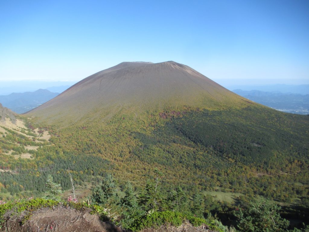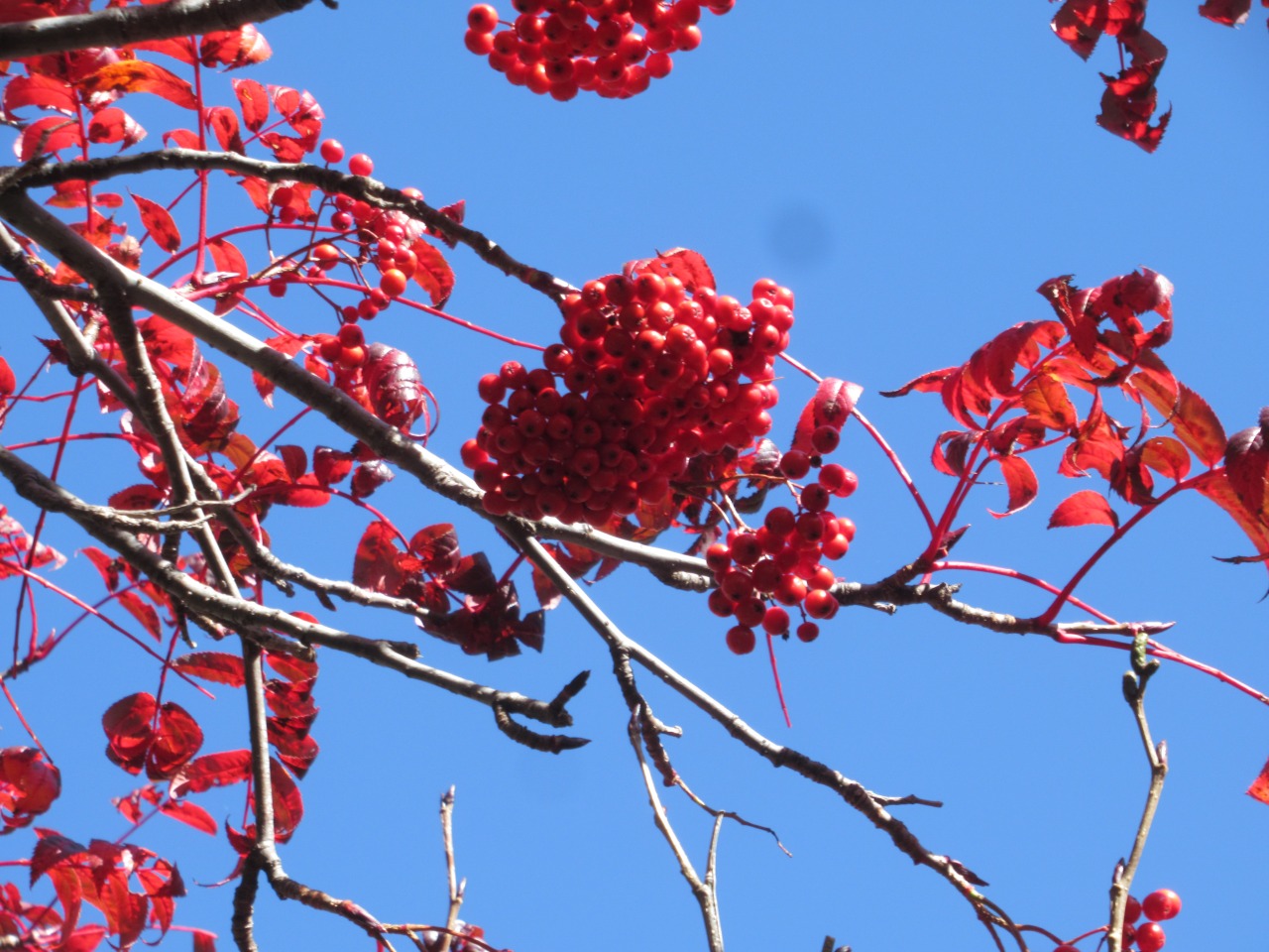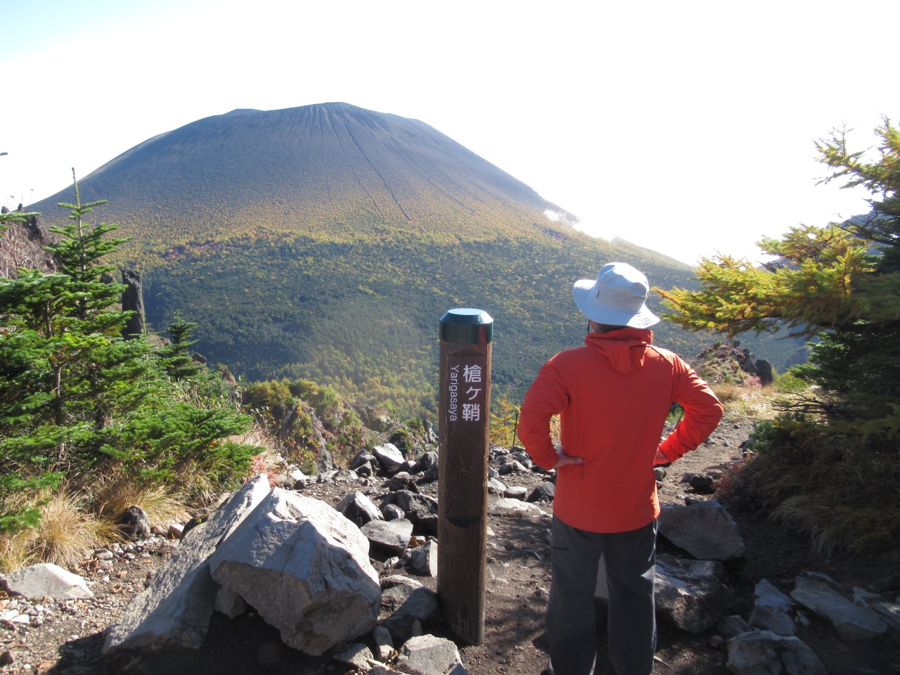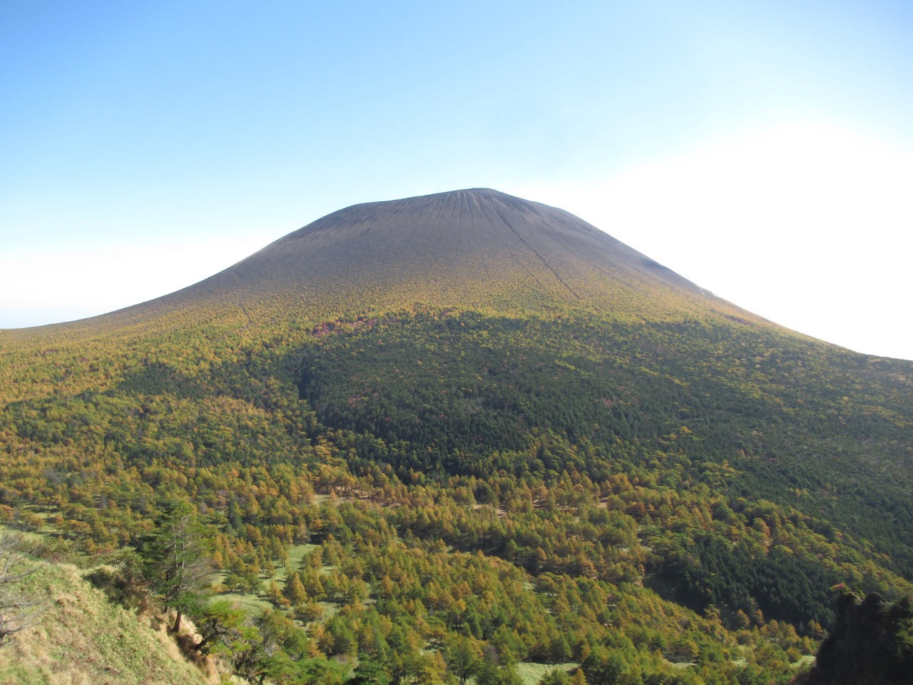 湯の平口分岐から、せっかくなので火山館に立ち寄り小休止、湯の平の金色のカラマツ、真っ赤なナナカマド、時折カラマツ越しに見える荒々しい外輪山や、なだらかで雄大な浅間の景観がずっと目を楽しませてくれました。