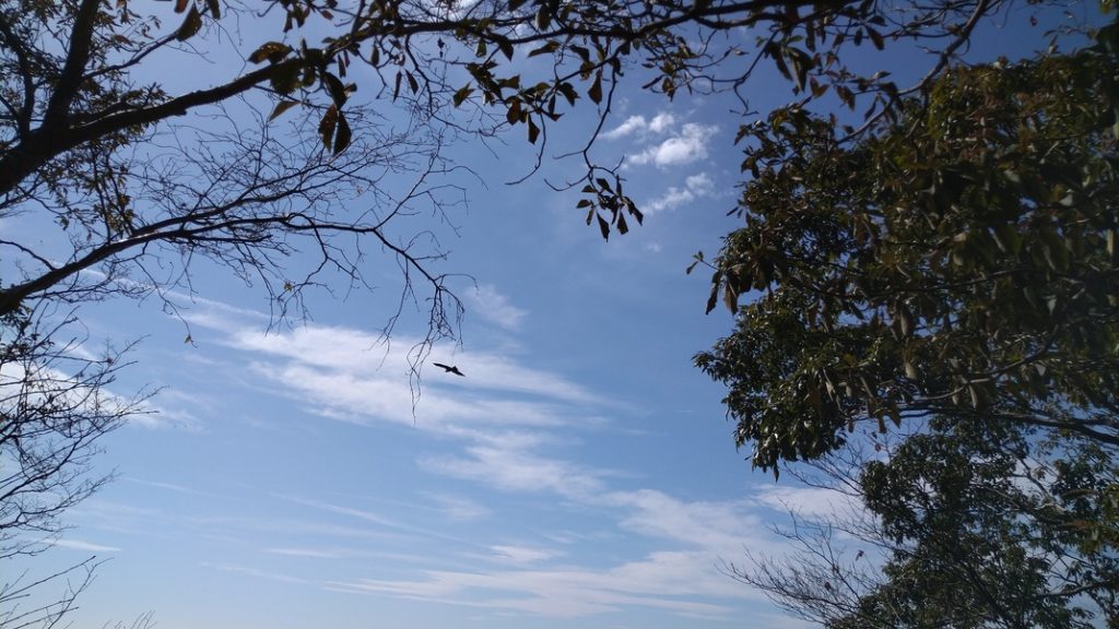 晃石山山頂で一休みしていると、二羽のトビが目の前を数回旋回して行った。大型の鳥が空を飛ぶ姿はカッコ良くて、来るのを待ち写真を撮ったが上手く撮れなかった。今度は不気味な音でスズメバチが来たので慌てて逃げる。馬不入山で食事をしている間も、飛んで来るので落ち着かず帰ろうとした時、おじさんが来て話し込んでしまう。そうしてるうちに、おじさんの背中辺りにスズメバチが…。急いで一緒に逃げ、桜峠まで話ししながら歩いた。山の話は楽しく、体力、バランスの衰えの話には「そうだ そうだ」とうなずく。先週行った栗駒山の紅葉が「素晴らしかった」と聞いたので、家でヤマレコで見たら本当に見事な紅葉だった。おじさんと別れた後、また虫の音を聞きながらの静かな山歩きとなった。