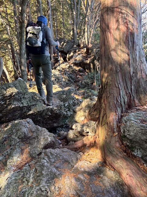 西武秩父駅に車を停めて、電車で3駅、正丸駅8時前に各々車やバスで集合した。駅から正丸峠を目指して歩き始め落ち葉の積もる登山道をおしゃべりしながらゆっくり進んだ。トレランの大会が1週間前にあったのでそのチェックポイントに張り紙がしてあり、回収している係の人もいた。奥村茶屋ではトイレを借りるためには何かを買わないといけないと言われて、自然薯そば 800円を買ってからトイレへ。水が貴重なのかバケツにある水を杓ですくい流す方式。丸山の手前にはパラグライダーの駆け降りる斜面があり、ここでランチタイムとした。利尻昆布で出汁をとった醤油味のカップラーメンでまあまあ。風もなく日差したっぷりで暑いくらいであった。丸山にはたくさんのハイカーがいて展望台の上で食事を取ったり写真を撮ったりしていた。しばらく行くと日向山に到着。ここはハイカーはいなかった。伊豆ヶ岳、武甲山が近くに見える。横瀬駅の方に向かい、一駅電車に乗り西武秩父駅へ。ここで土産物を買いつつクラフトビール(小熊のヴァイツェン 900円)と秩父玉こんにゃく380円を買って高砂ホルモンの前にフライング。高砂ホルモンは定番の美味しさでビールやサワーが進んだ。四人で思いっきり飲み食いして18500円と安い。車で小山に戻った。