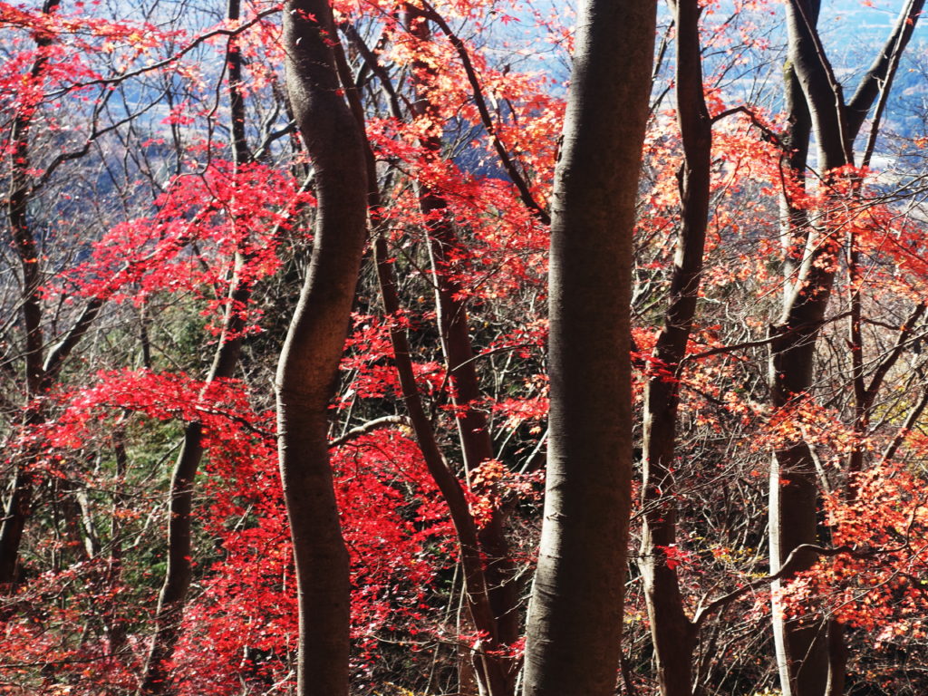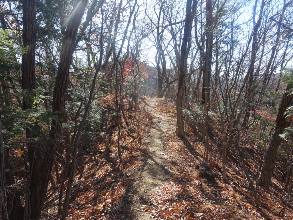 登山口には当然誰も居ない、しかし登山ルートはそれなりに整備され何の問題もない。しかし、今回は予想外の問題が有った、落ち葉だ。山頂直下に急な岩場が長く続く。ルートはロープが有って辿ればいいのだが、落ち葉の問題である。スタンスが落ち葉で隠され確認しながら進むので可なり疲れる。特に、下りは足場探しに必死で本当に疲れた。