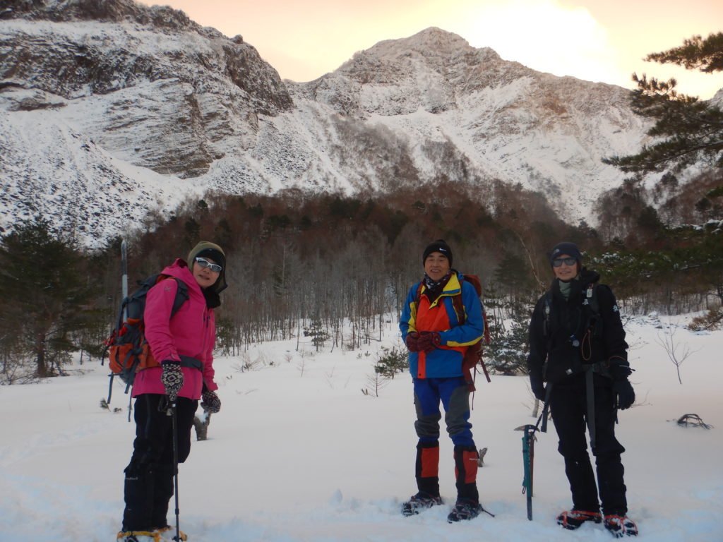 夜中にトイレで起きると、遠くでうなるような強風が山の上部から聞こえていました。でもテント場はそれほど風はなく、テント設営場所を変更して正解だとわかりました。雪が降っていましたが、空を見上げると星が観えていたので、天候が回復しているんだとわかりました。