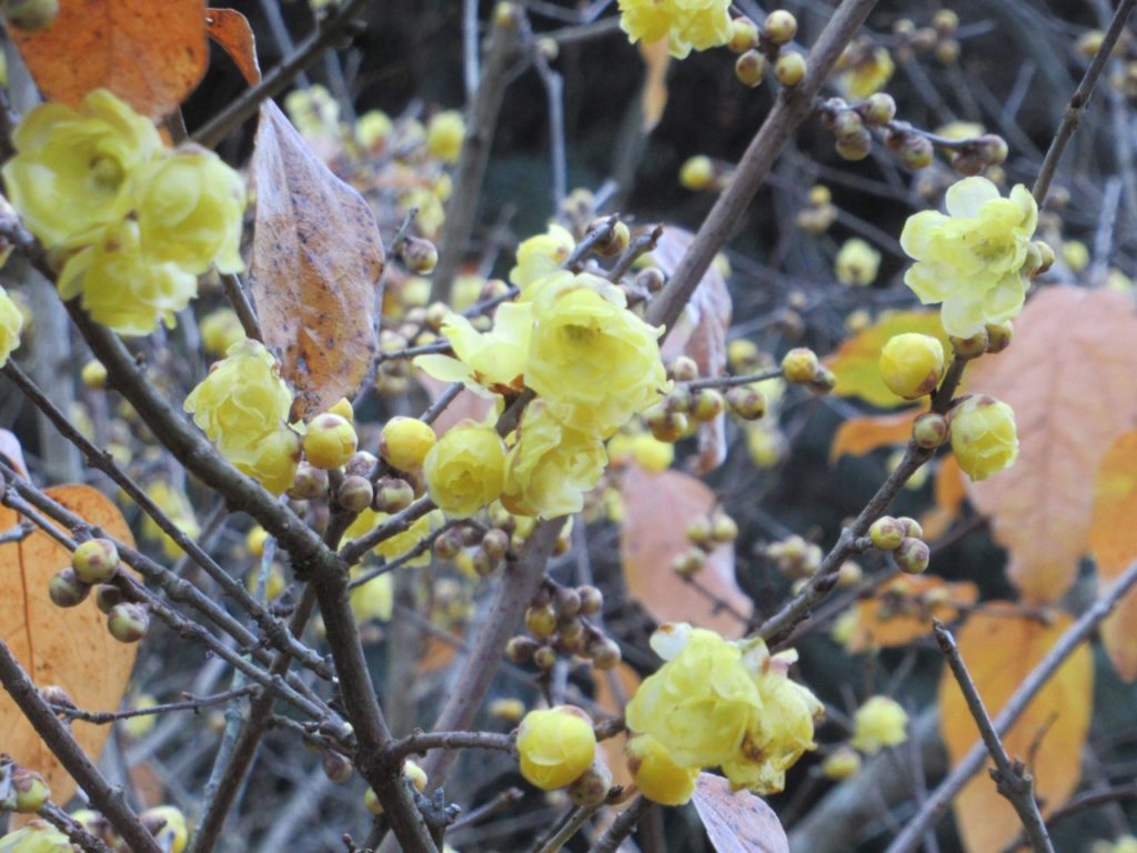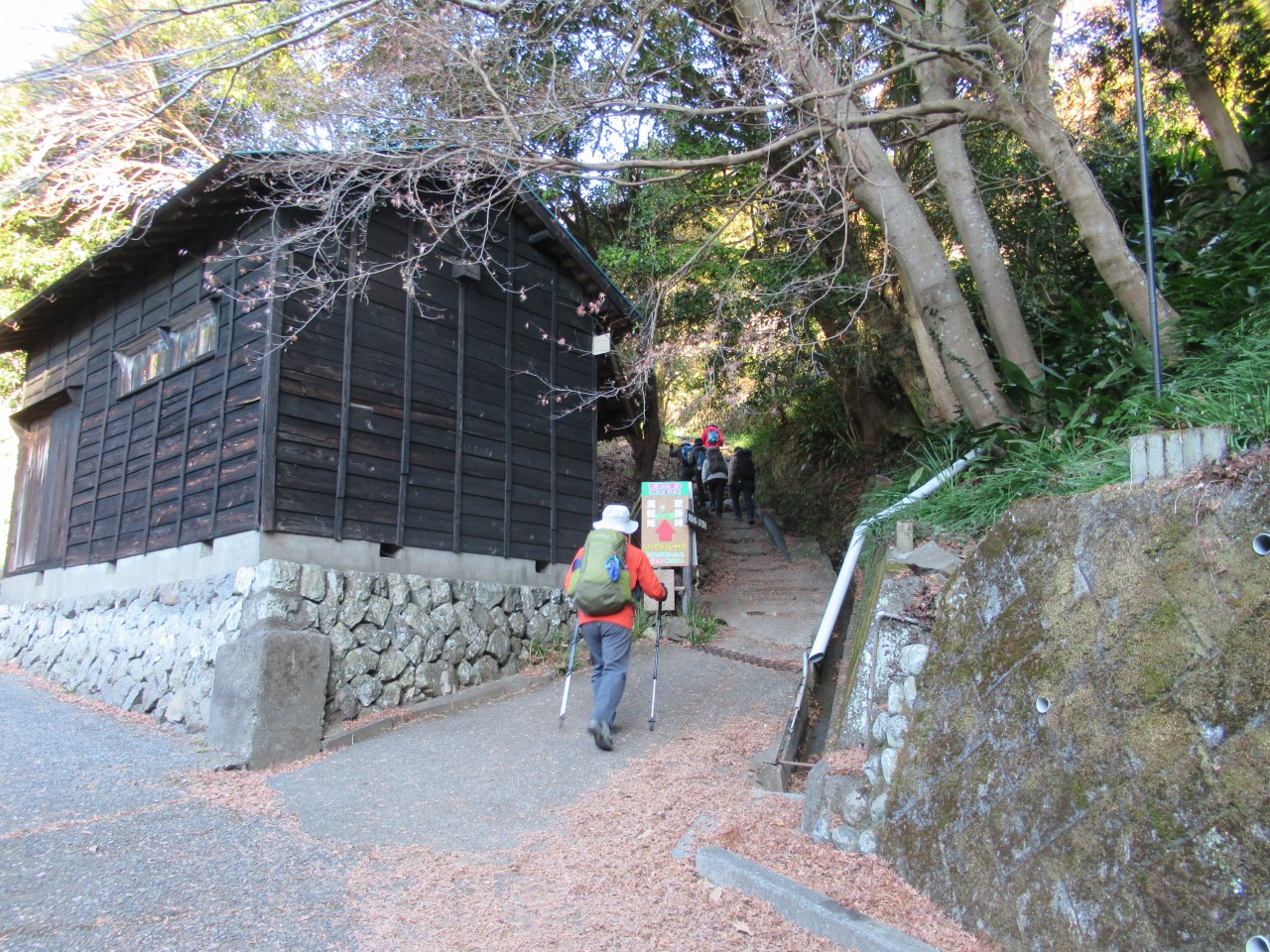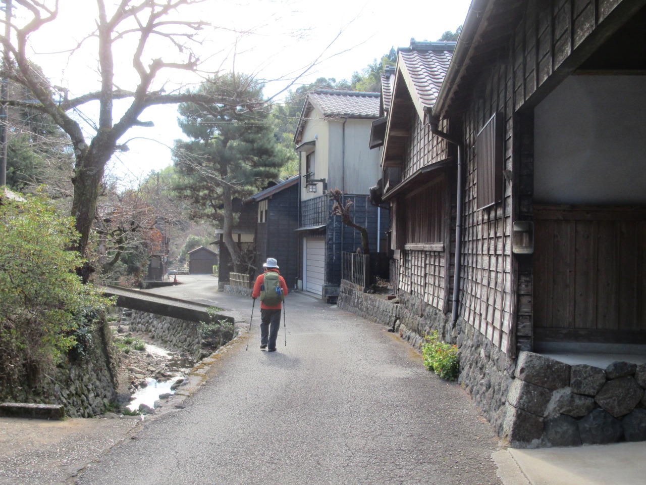 ホテルで朝食を済ませ、8時過ぎにのんびりと登山口駐車場に到着すると花沢の里駐車場は50台程の先客でほぼ満車状態、何とか空きを見つけ出発しました。登山口まで閑散とした集落を通り抜けますが、歴史の息吹を感じるまちづくりをしている様で、何とも風情のある板張りの民家が沿道に立ち並び、早くも蝋梅や水仙の花とみかんの実が温暖な気候と早春を感じさせます。